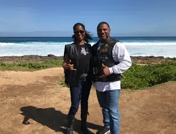 #Buffalo_Soldiers_MC_Honolulu Showing Aloha to visiting Dallas Chapter member Boss Man, his wife and friends.